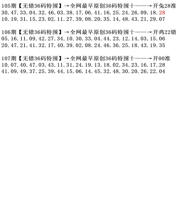| 106期:⑿码 | 01,08,13,18,19,21 22,28,40,43,44,49 | 開:鸡22准 |