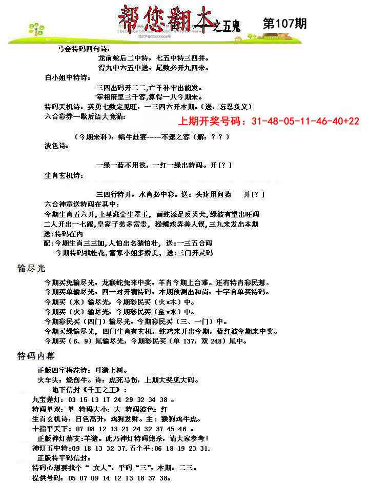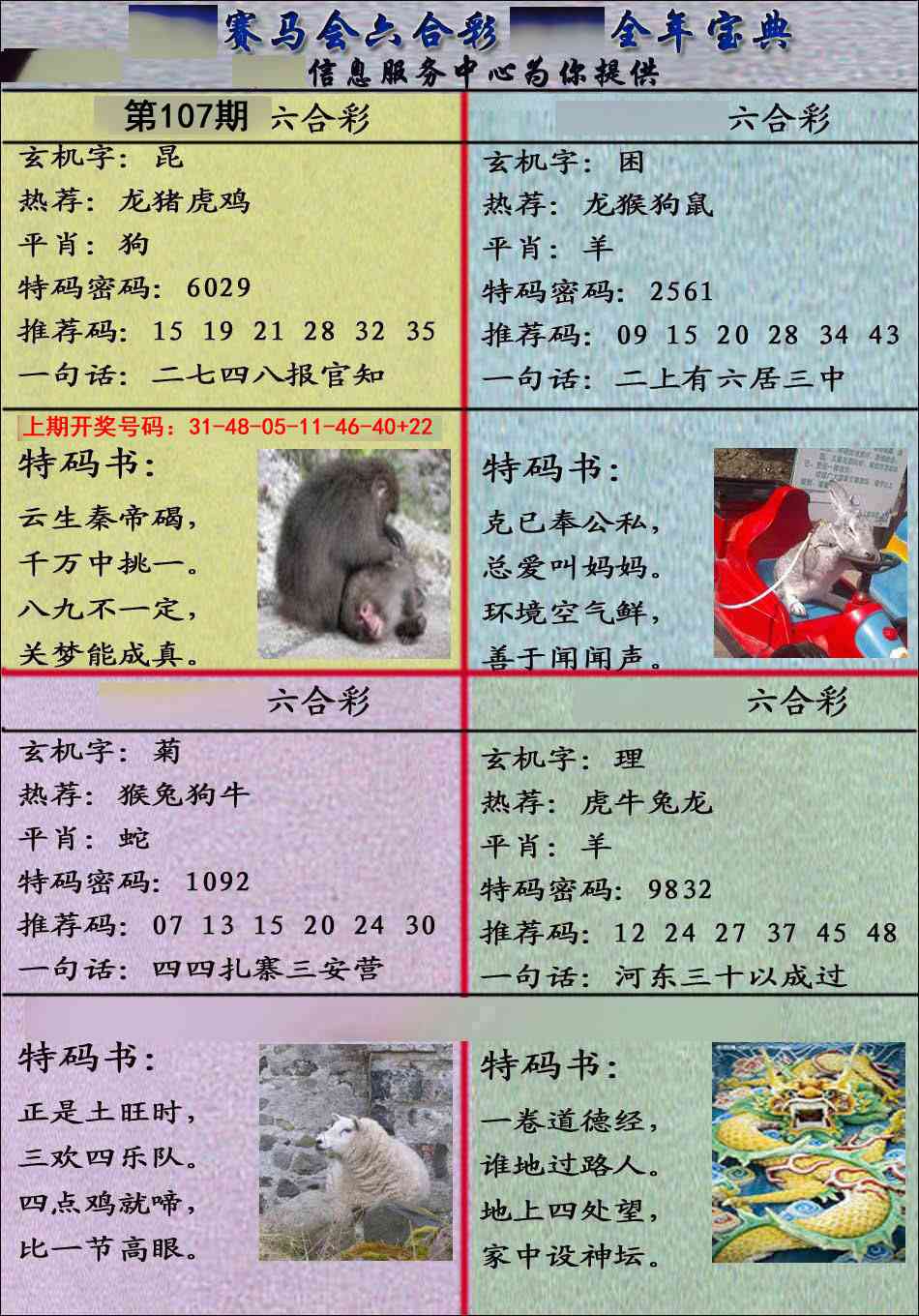 | 106期:平特 | 羊羊羊 | 開:羊48准 |