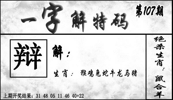 | 107期:一肖 | 免费公开·见证实力 | 開:?00准 |