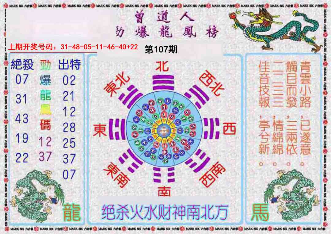 | 101期:单双 | 双数+马龙 | 開:龙39准 |