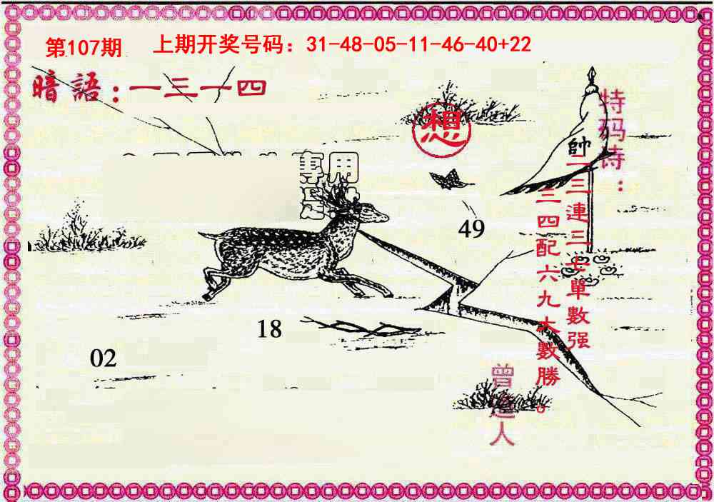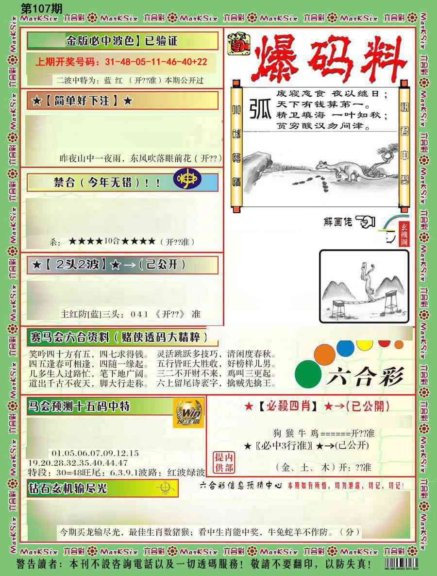| 107期:五肖 | 免费公开·见证实力 | 開:?00准 |