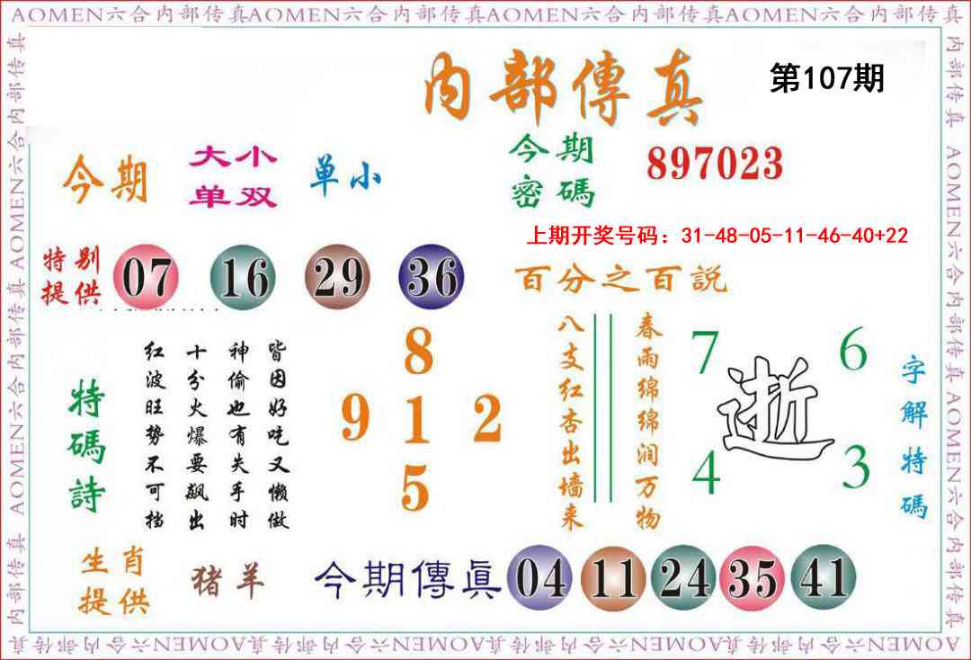 | 107期:平特 | 免费公开·见证实力 | 開:?00准 |