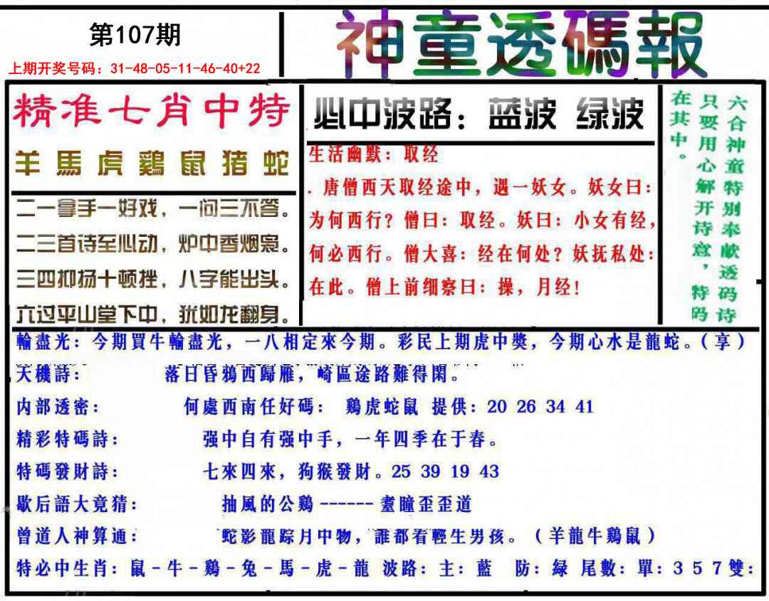 | 107期:七肖 | 免费公开·见证实力 | 開:?00准 |