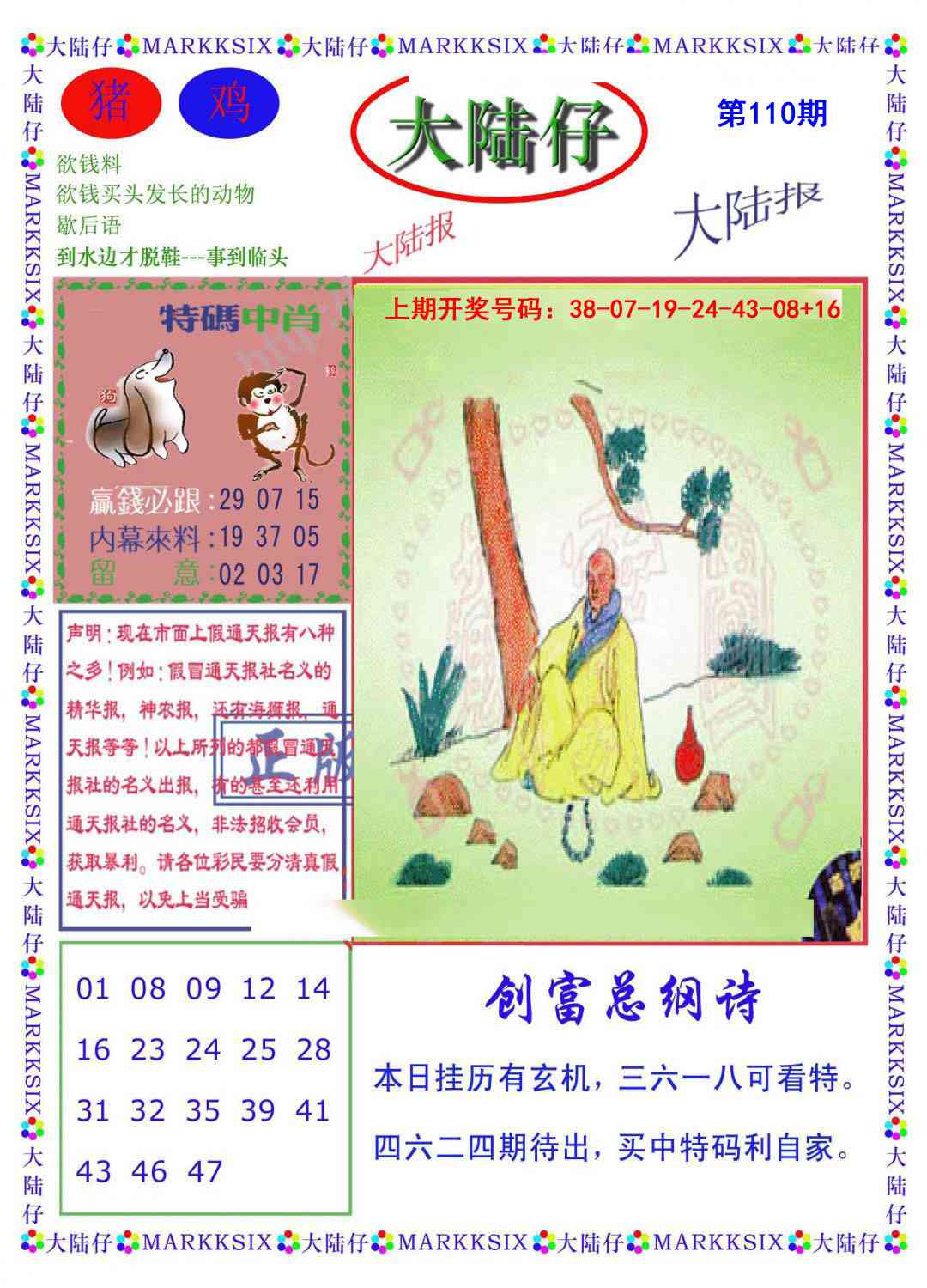 | 108期:⑿码 | 03,07,23,24,25,31 35,36,37,41,45,47 | 開:狗45准 |