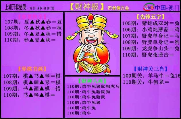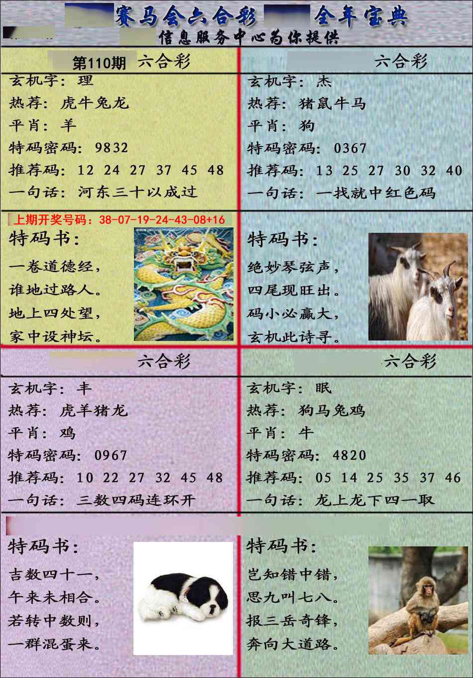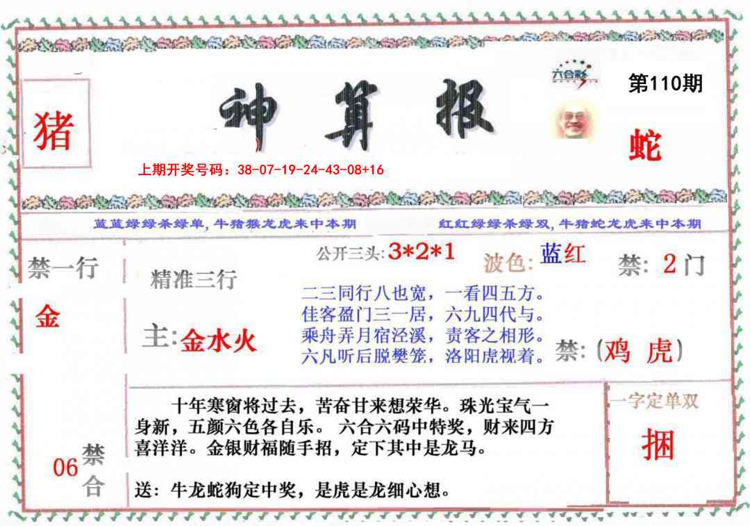 | 109期:八肖 | 猴羊马鸡虎猪牛蛇 | 開:?00准 |