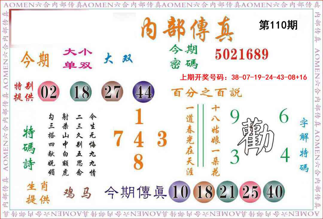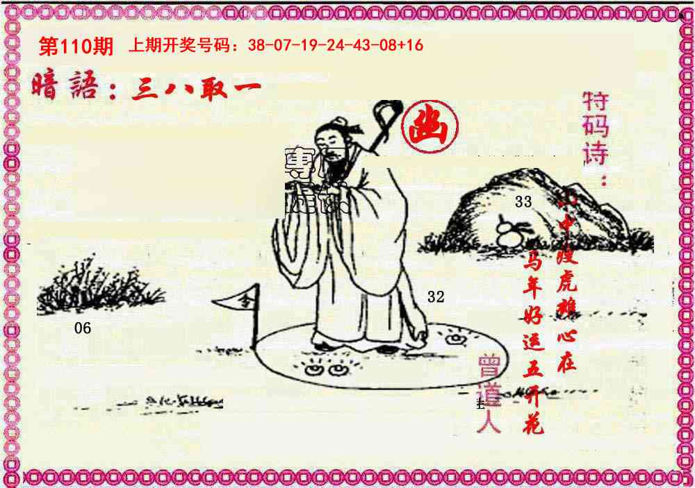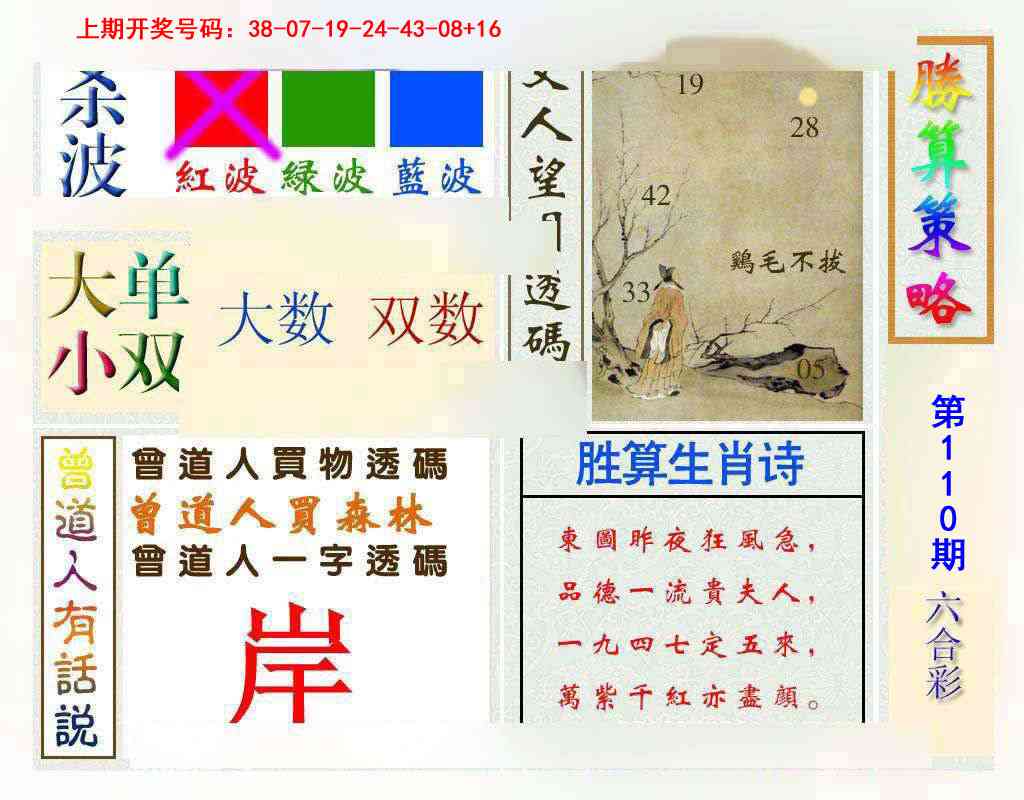 | 109期:五肖 | 猴羊马鸡虎 | 開:?00准 |