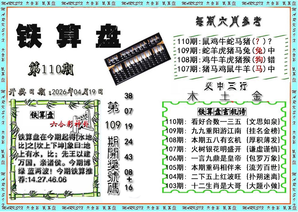 | 109期:四肖 | 猴羊马鸡 | 開:?00准 |