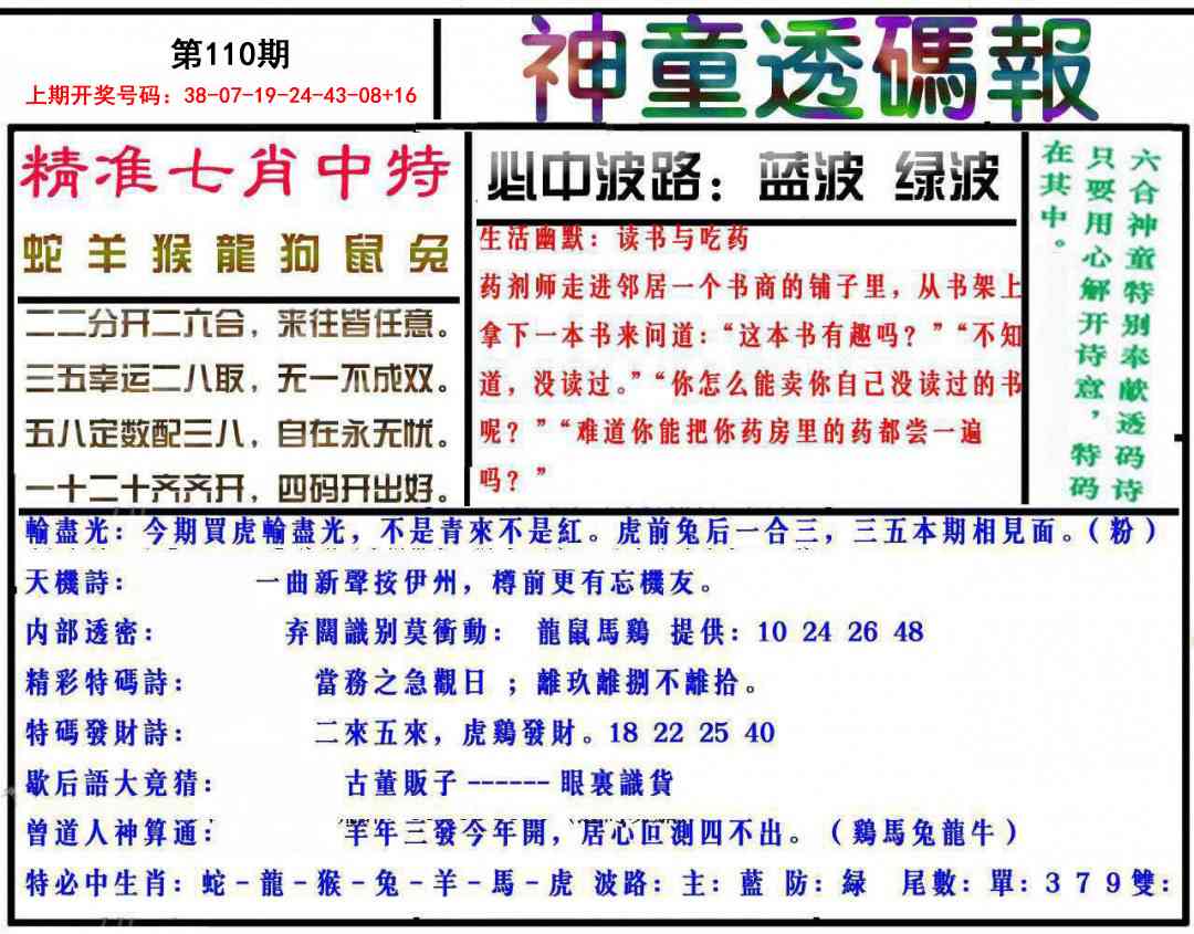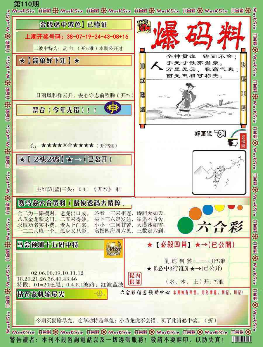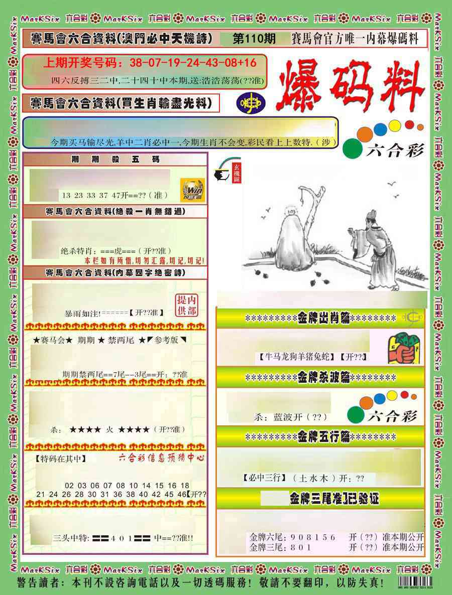 | 109期:七肖 | 猴羊马鸡虎猪牛 | 開:?00准 |