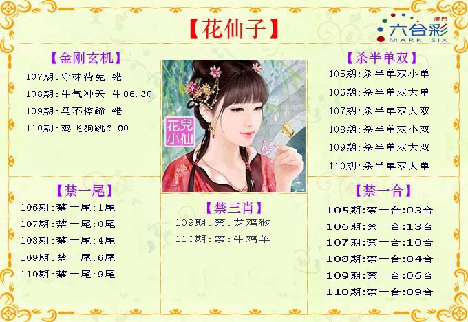 | 106期 | 猴 | 蓝单 | 5尾 | 3 | 開:鸡22准 |