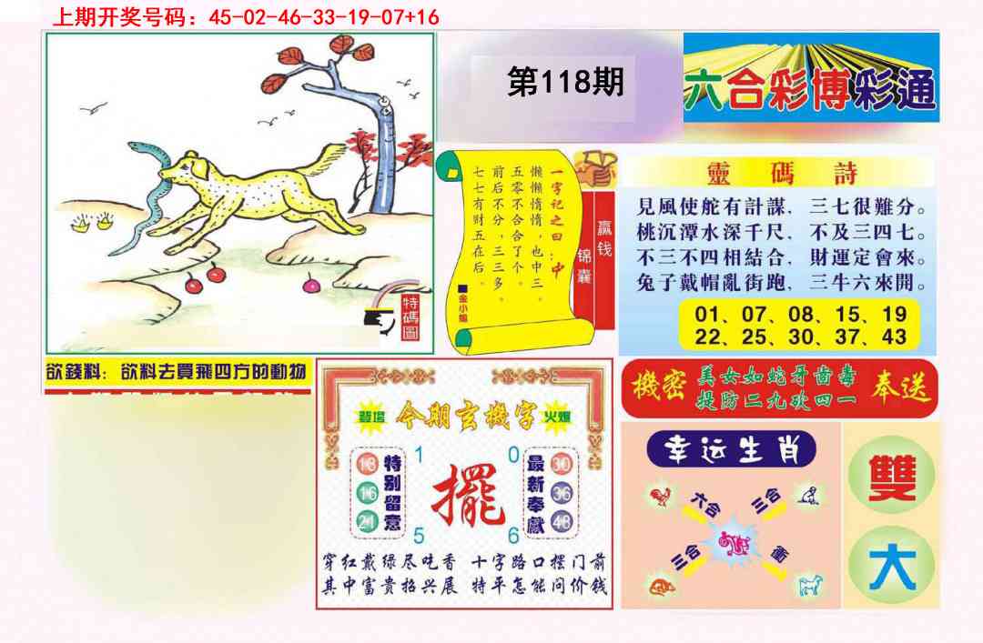 | 118期:单双 | 双数+龙狗 | 開:?00准 |
