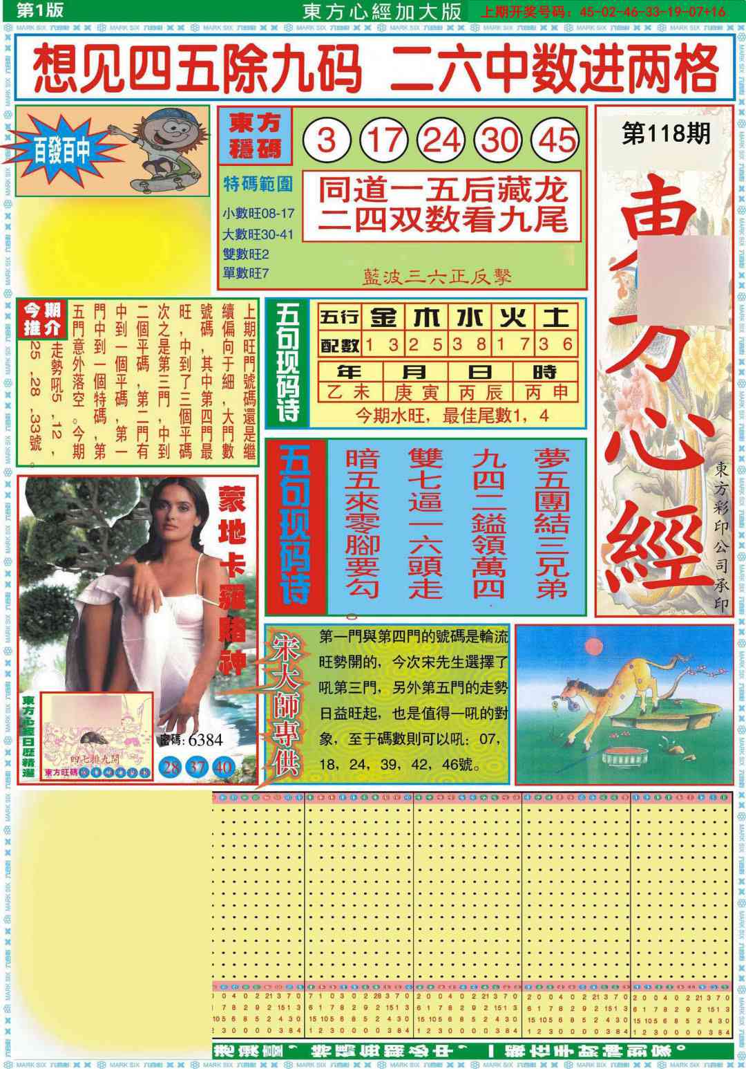 | 118期:⑹码 | 03,06,15,42,44,48 | 開:?00准 |