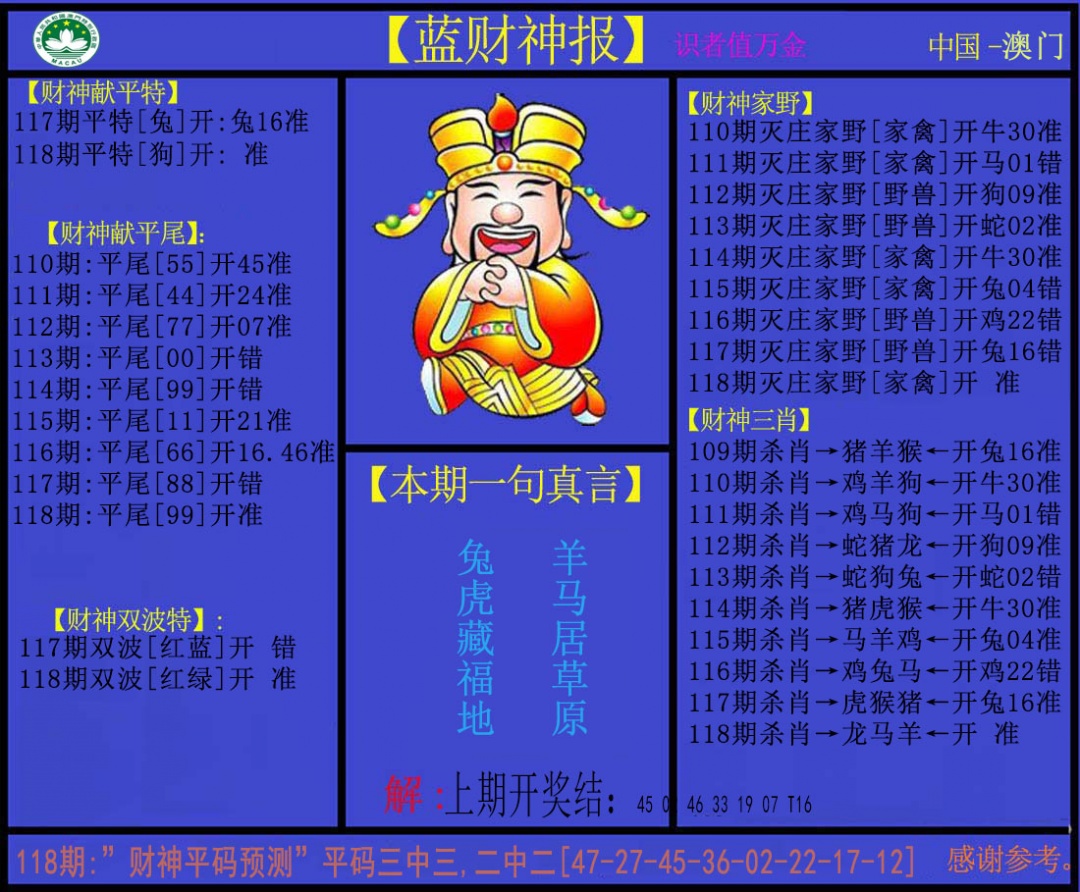 118期:吉祥如意Π【4肖中特】Π【4肖中特】Π实力免费见证中!