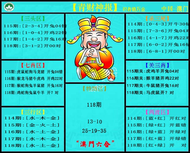 | 118期:波色 | 绿波+蓝波 | 開:?00准 |
