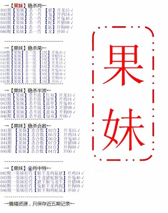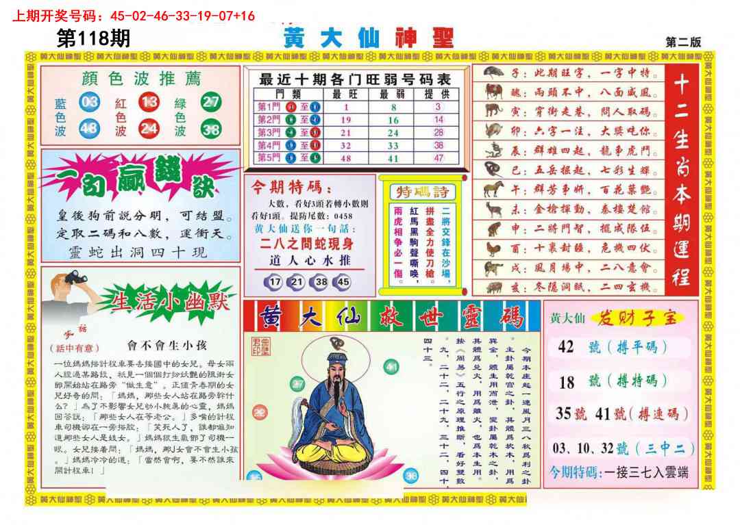 | 118期 | 猴 | 红单 | 1尾 | 3 | 開:?00准 |