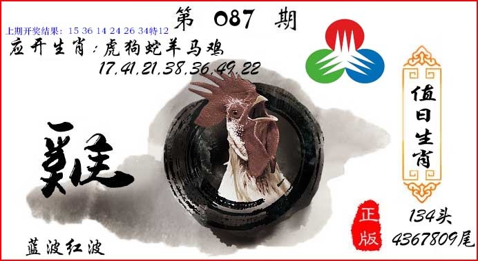 | 075期 | 鸡 | 4尾 | 4 | 開:狗33准 | |