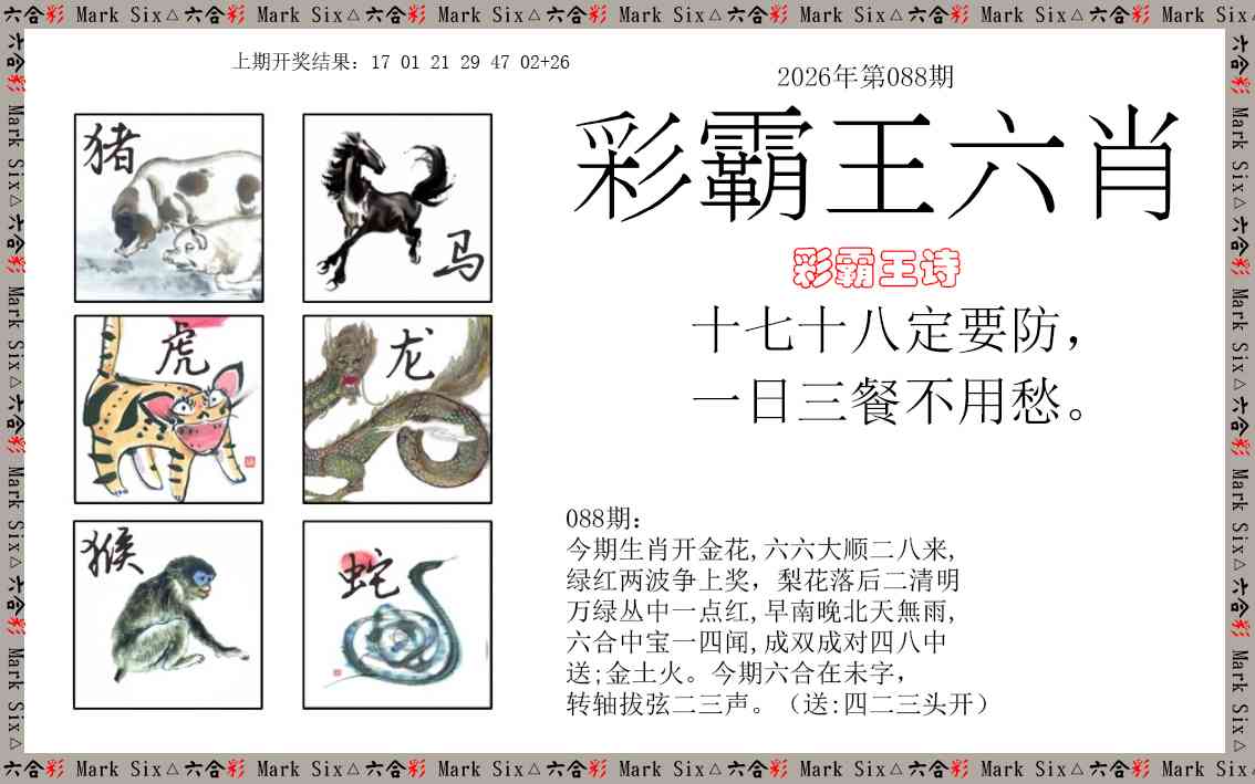 | 081期:六肖 | 马猪兔鼠虎蛇 | 開:虎17准 |