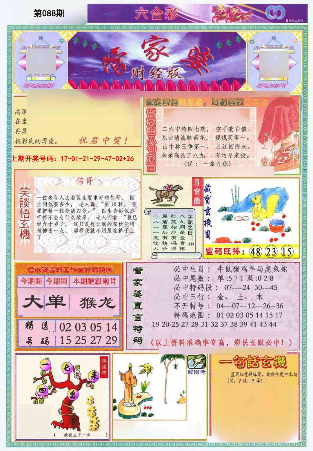 | 088期 | 猪 | 红双 | 5尾 | 0 | 開:?00准 |