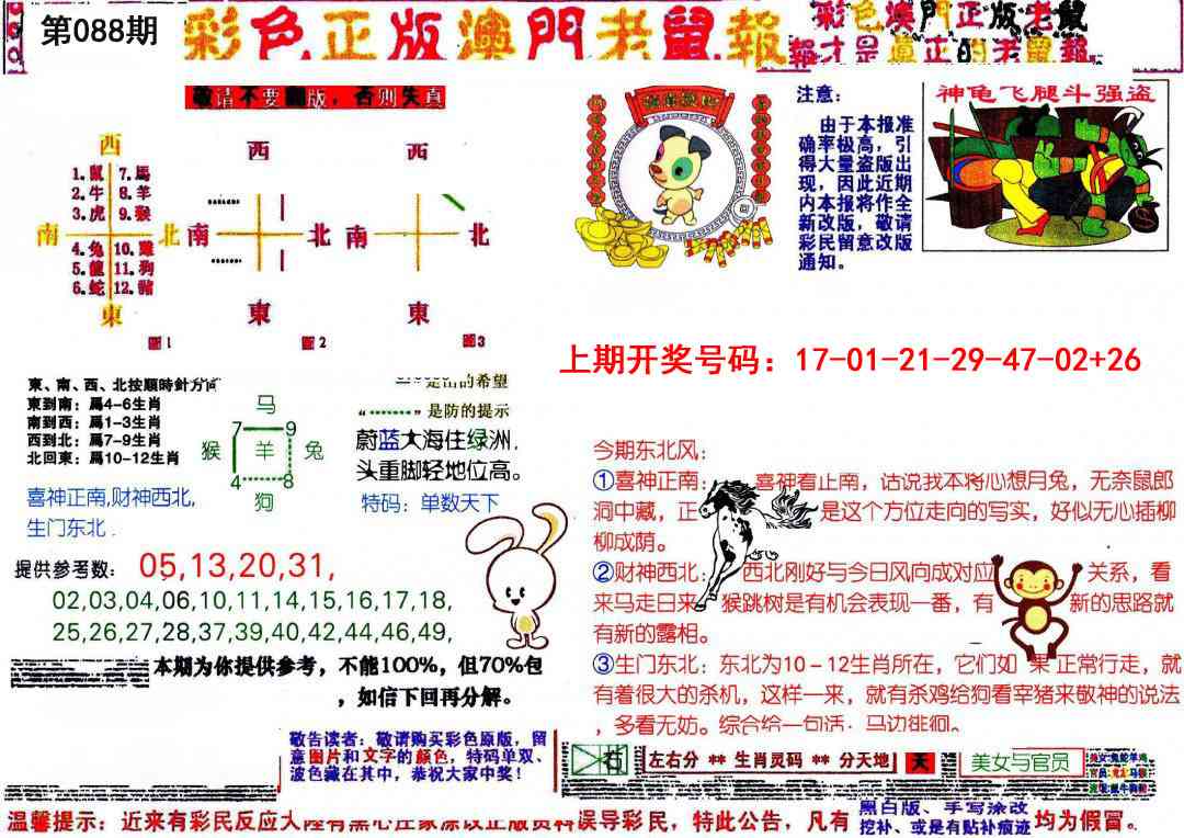 | 088期:五肖 | 龙鸡兔蛇羊 | 開:?00准 |