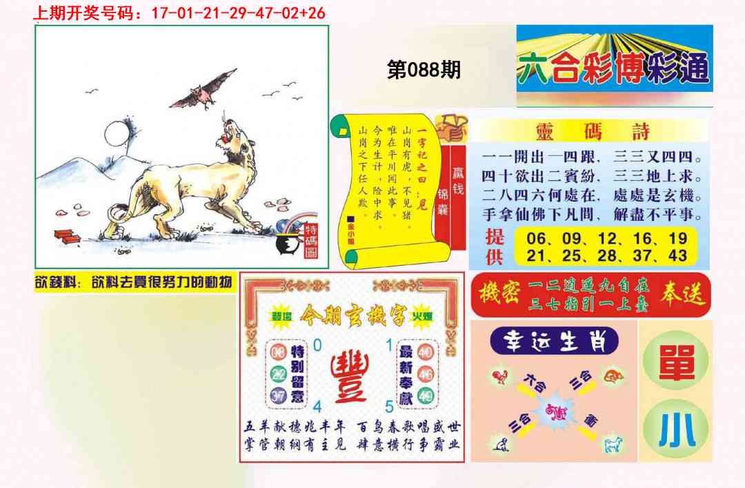 | 086期:家野 | 家禽+虎猴 | 開:羊12准 |