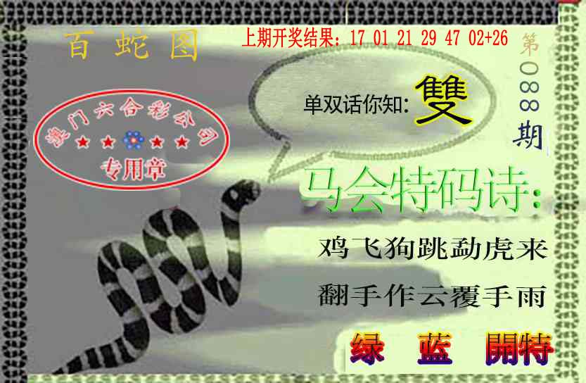 | 087期:单双 | 单数+蛇羊 | 開:蛇26准 |