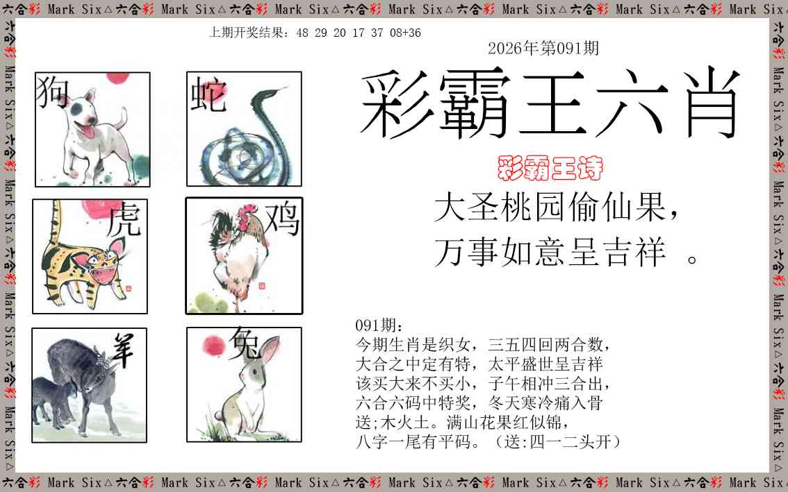 | 086期:六肖 | 羊狗猴虎鸡兔 | 開:羊12准 |