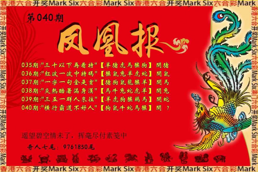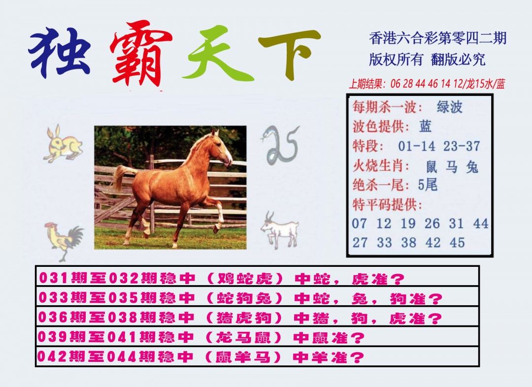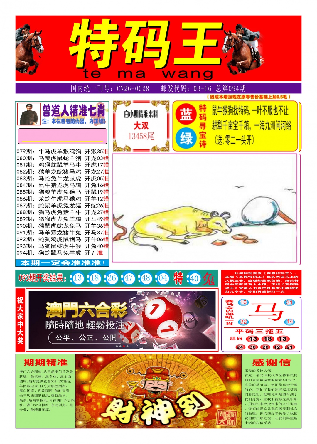 | 092期 | 马 | 红单 | 1尾 | 開:牛06准 | |