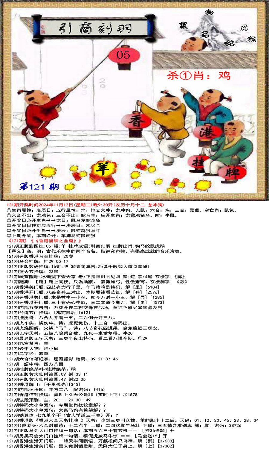 | 293期 | 鼠,牛,羊,鸡,狗,猪 | 開:羊47准 |