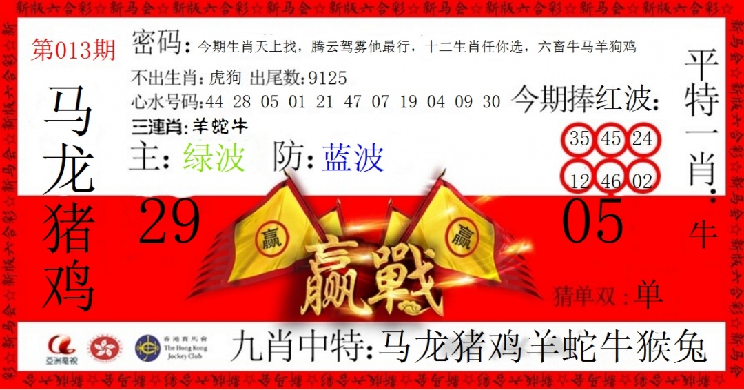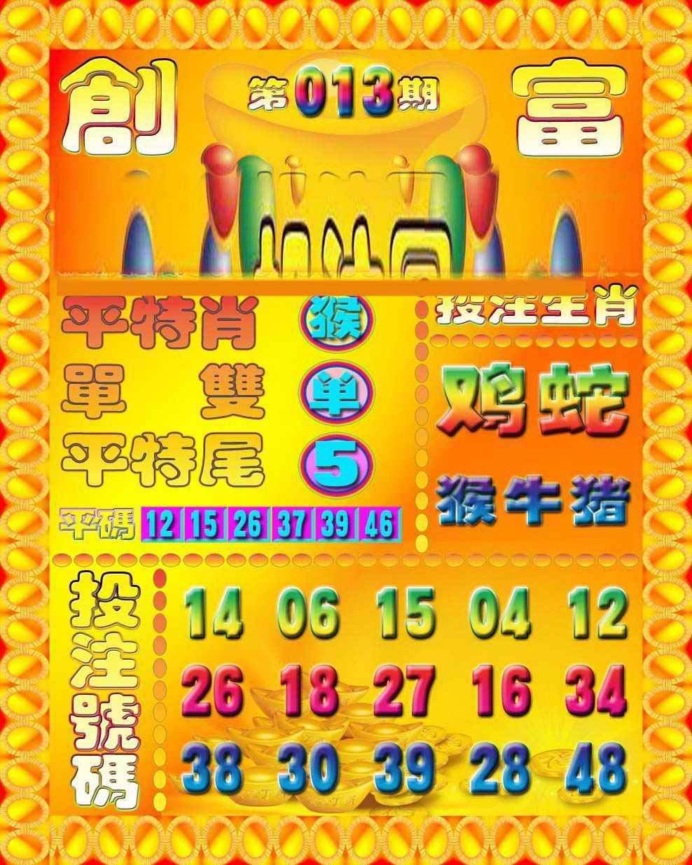 | 013期 | 鼠,牛,兔,龙,蛇,羊 | 開:蛇01准 |