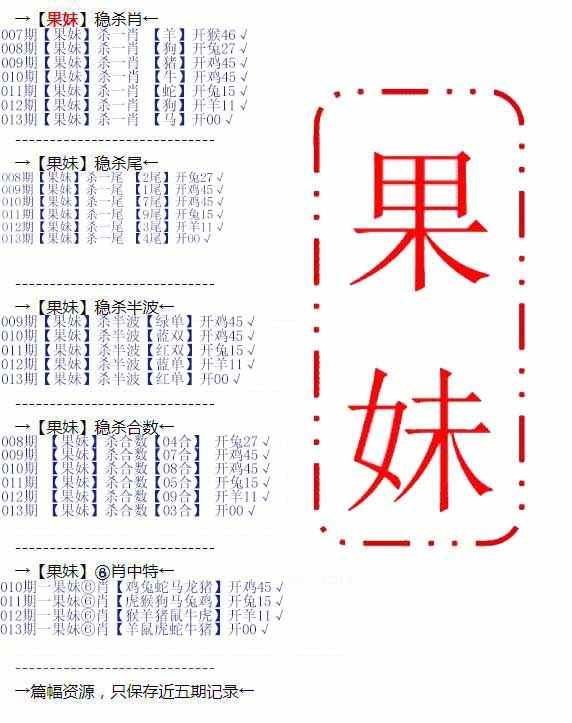 | 008期 | 鸡猴狗羊 中1次 6899789.com | 008期开:鸡21 |