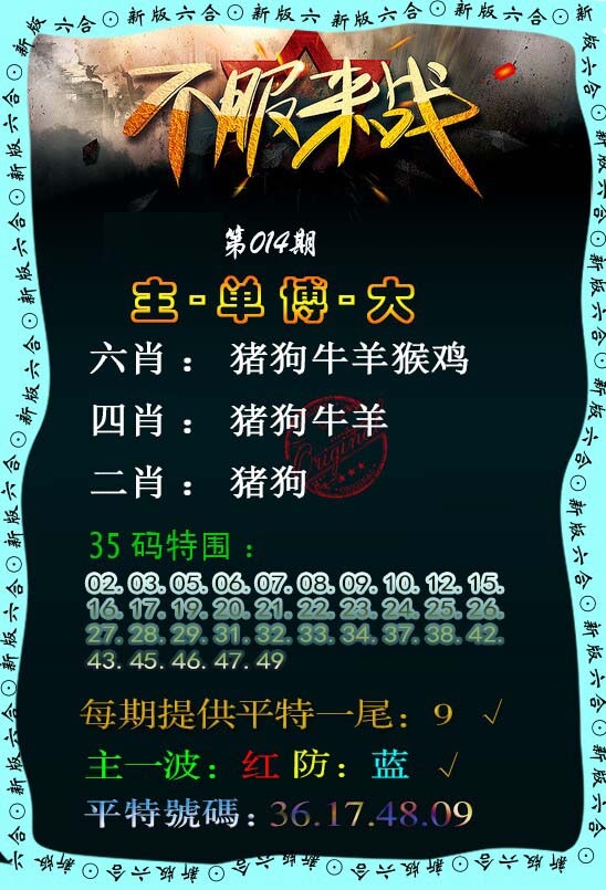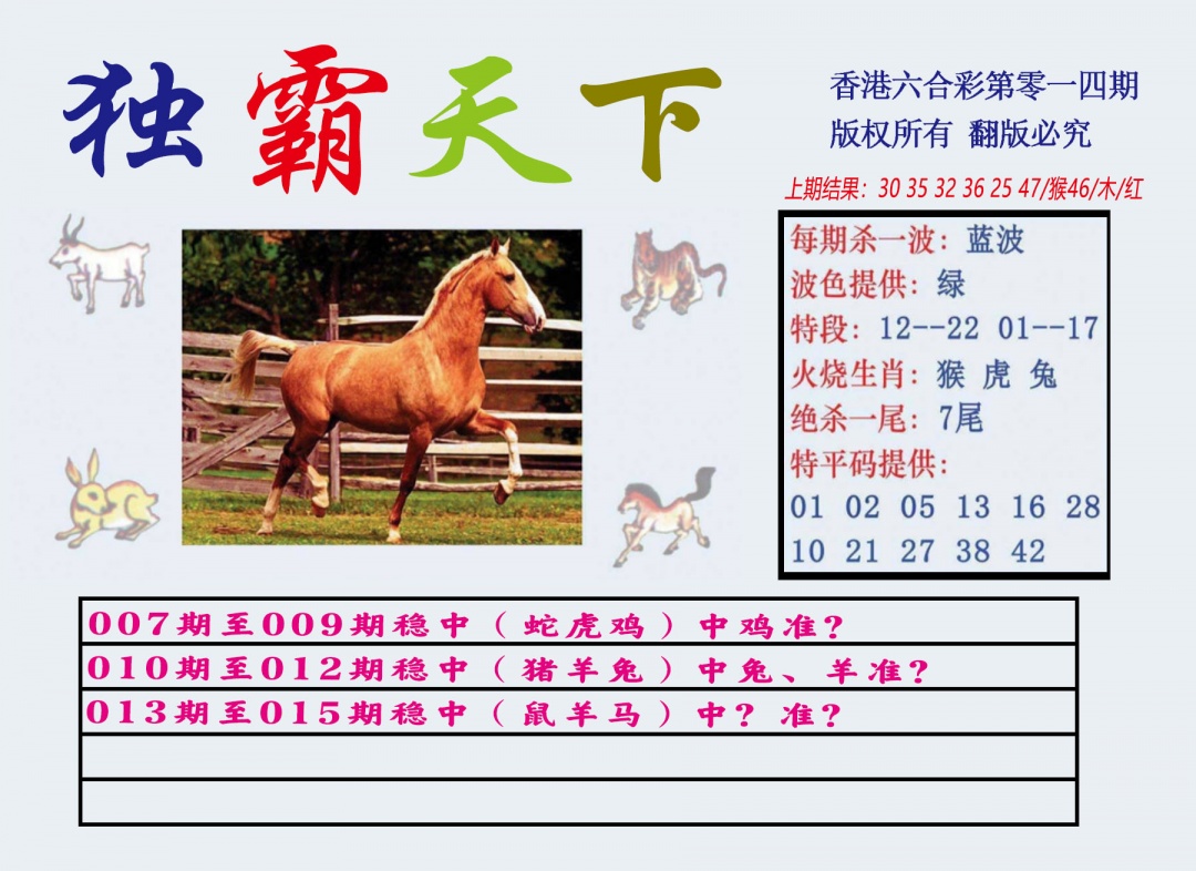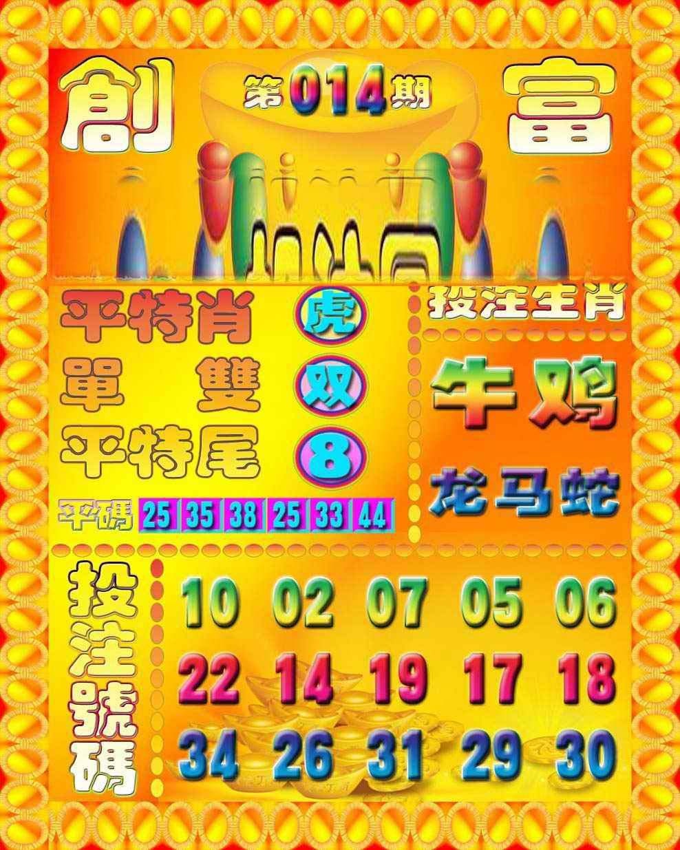 | 014期 | 鼠,龙,蛇,马,羊,猪 | 開:龙26准 |