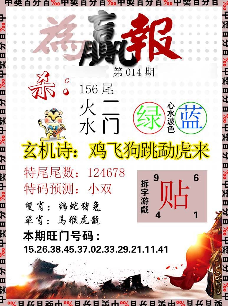 | 031期 | 虎 | 绿单 | 1尾 | 1 | 開:龙26准 |