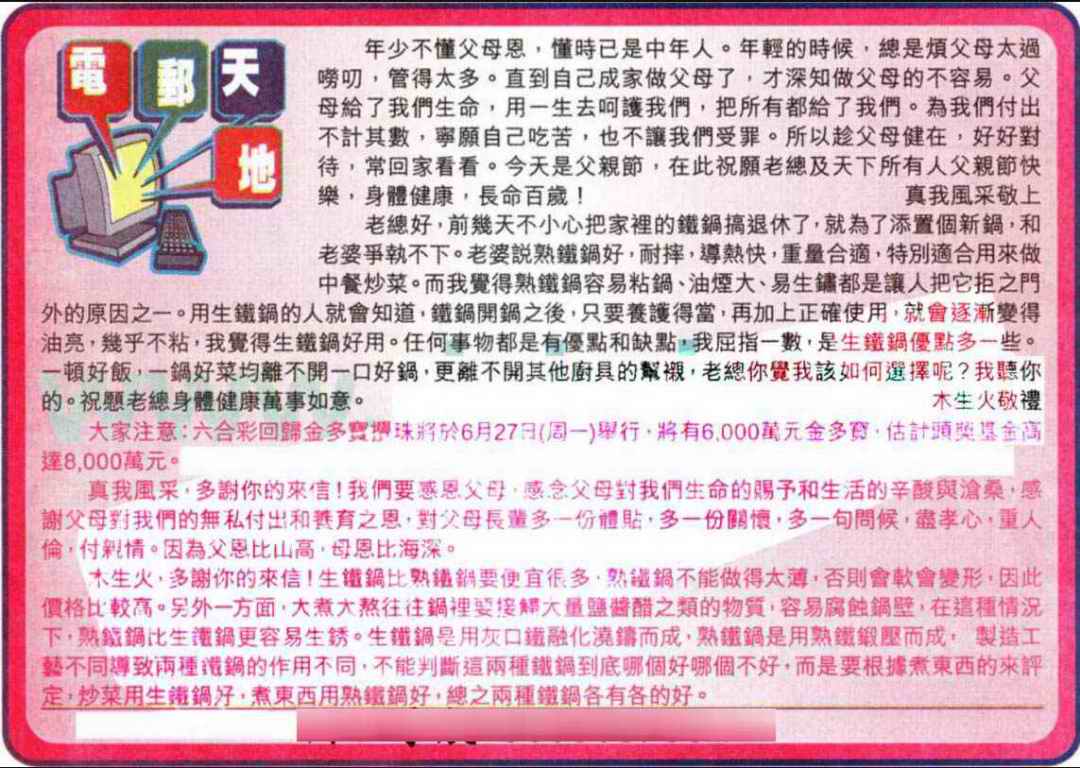 | 106期:尾数 | 0-1-2-3-4-8-9 | 開:鸡22准 |