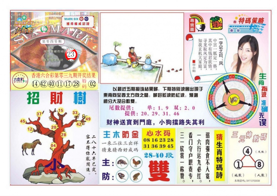 | 103期:六肖 | 鸡兔狗猪羊鼠 | 開:?00准 |
