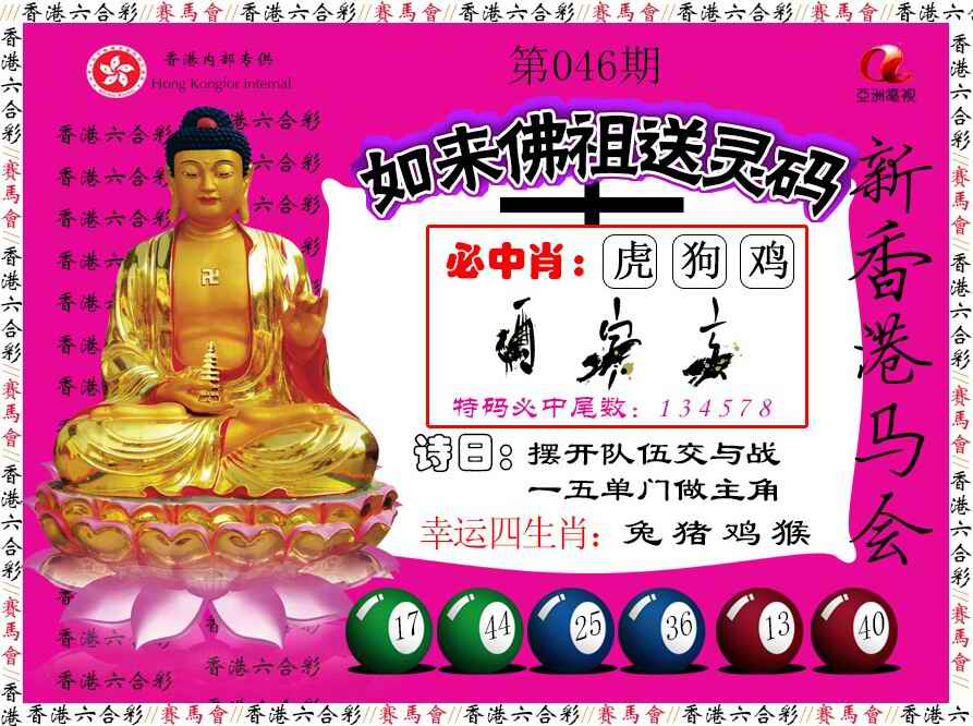 | 108期 | 鼠,虎,龙,猴,狗,猪 | 開:狗45准 |