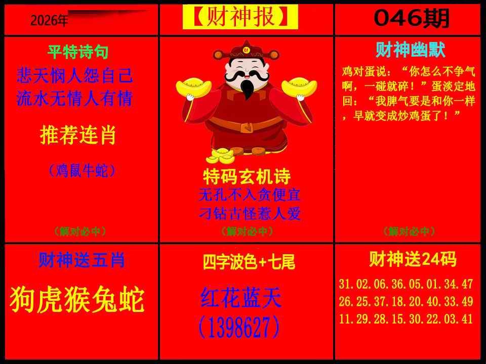 | 114期 | 虎 | 红单 | 6尾 | 0 | 開:牛30准 |