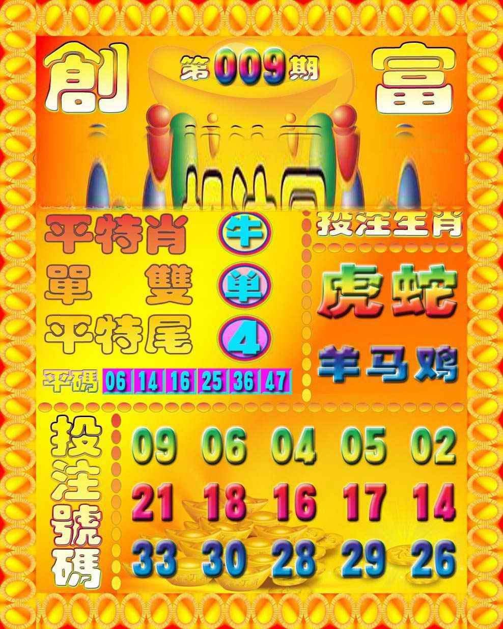 | 009期 | 蛇 | 蓝单 | 9尾 | 0 | 開:虎28准 |